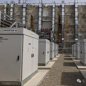 位于加利福尼亚州莫斯兰丁的Vistra储能设施电池大楼外的电源逆变器和电缆。