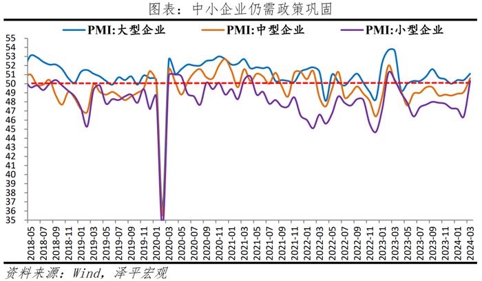 3月大、中、小型企业PMI分别为51.1%、50.6%和50.3%,比上月回升0.7、1.5和3.9个百分点。企业多项指标明显改善,经济修复效果显现。但仍需警惕需求不足等问题,稳固小型企业复苏态势。