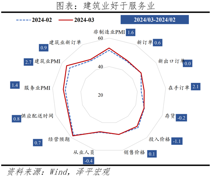 4)建筑业商务活动指数为56.2%,较上月上升2.7个百分点,弱于季节性(+3.3个百分点),房地产拖累。房地产成交仍疲软,3月前30日30大中城市成交套数和面积同比-45.4%和-46.5%;黑色金属冶炼及压延加工产需仍在荣枯线下。房地产支持政策需应出尽出,应出早出;3月22日国常会要求进一步优化房地产政策,着力构建房地产发展新模式。