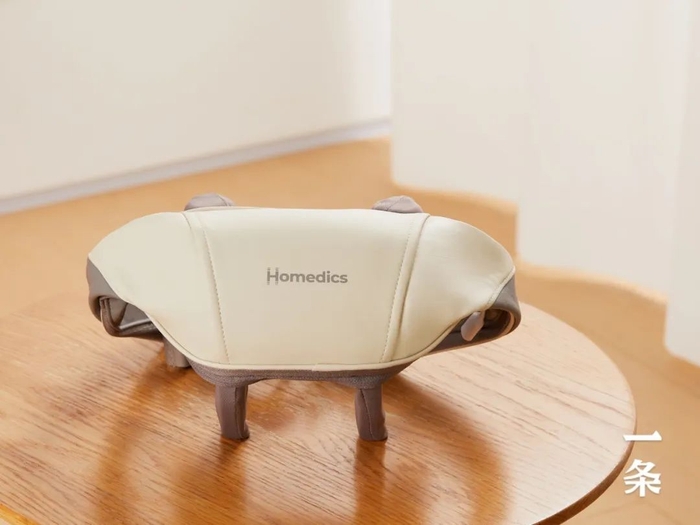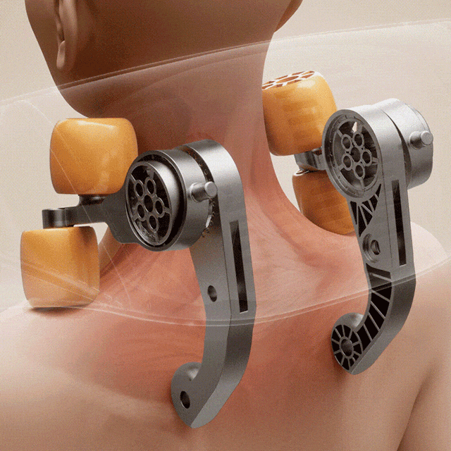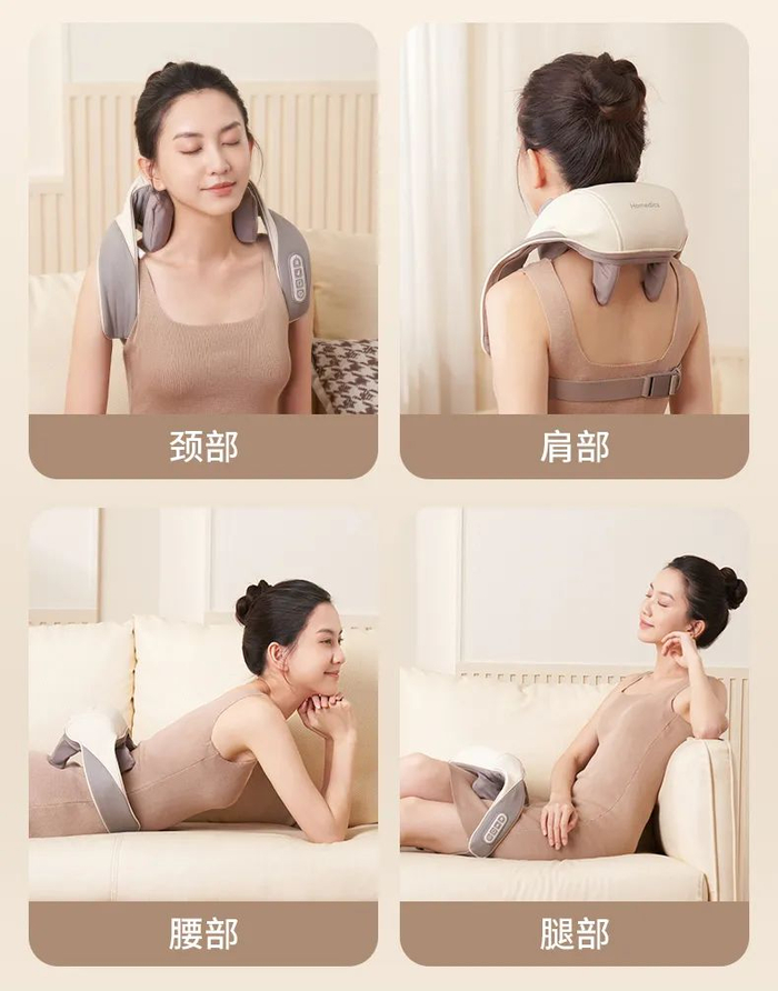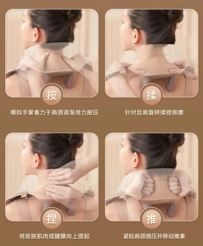 它的按摩手,就像模拟人手虎口按摩一样,对斜方肌进行毫不留情地揉捏,捏松你僵硬的肌肉。