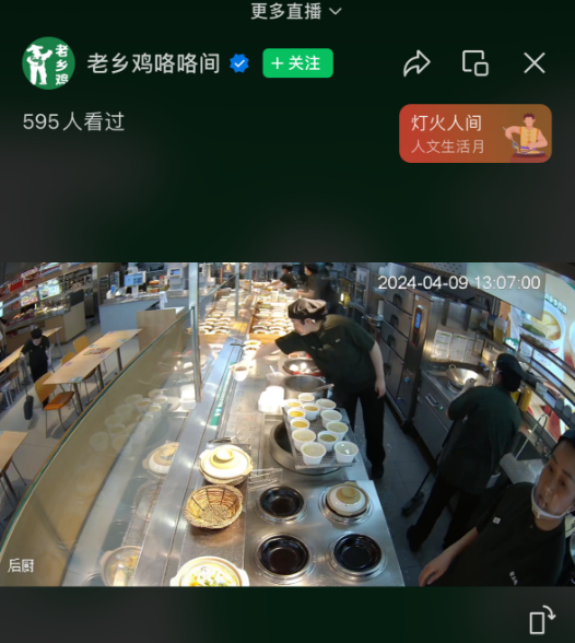 第二,开通中央厨房和餐厅后厨实时监控直播。事实上从2016年开始,老乡鸡就决定推进数字化转型,尝试厨房的公开透明化,让消费者看在眼里吃在嘴里。