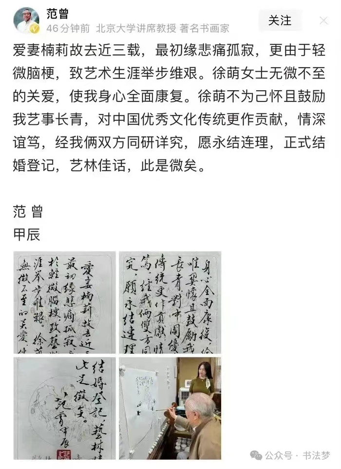 早上起来,看到范曾结婚的消息被刷屏了。
