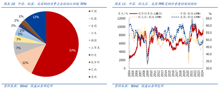 1、本质看,铜兼具商品属性和金融属性。其中:1)商品属性方面:需求决定铜价涨跌的方向,中国、欧元区、美国等3大经济体占全球铜消费的比例超过70%,全球、中国、美国、欧元区PMI、OECD综合领先指标等是较好的观测指标;供给会影响铜价涨跌的幅度,具体可以关注铜矿生产企业资本开支可能影响铜的长期供给,铜矿生产国(主要是智利、秘鲁等)劳工问题、自然灾害、生产出口政策等是短期扰动。