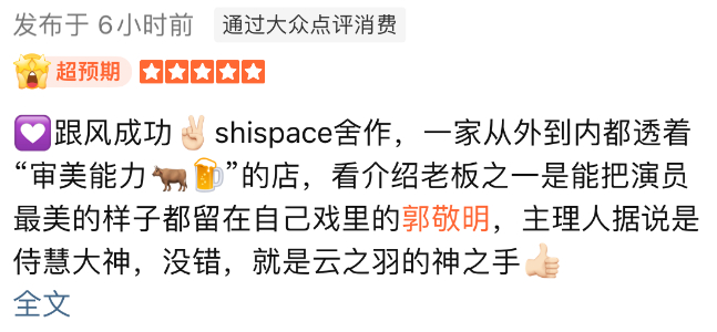 无论是点评网站里的顾客,还是社交平台上的探店网红,都会提及自己是来“体验一下郭敬明团队的审美。”