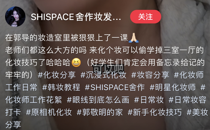 而店里妆造师用自己的账号发布分享帖子,也曾直接将其称为“郭导的妆造室”。