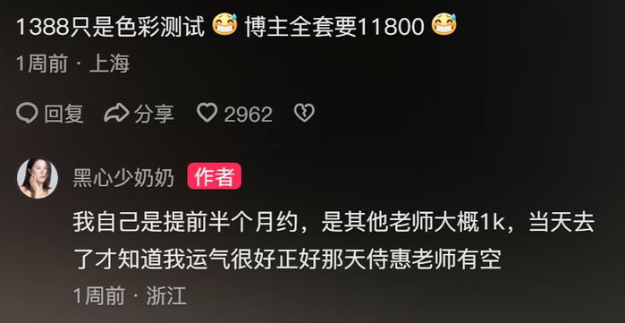 不过店内高昂的消费价格依然让普通人咋舌,毕竟根据一位博主在评论区里的回答,这么一套全下来似乎要花1万多块。