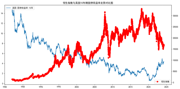 最近很明显的一个趋势是,恒生指数的走势,跟美国10年期国债利率完全是负相关的。