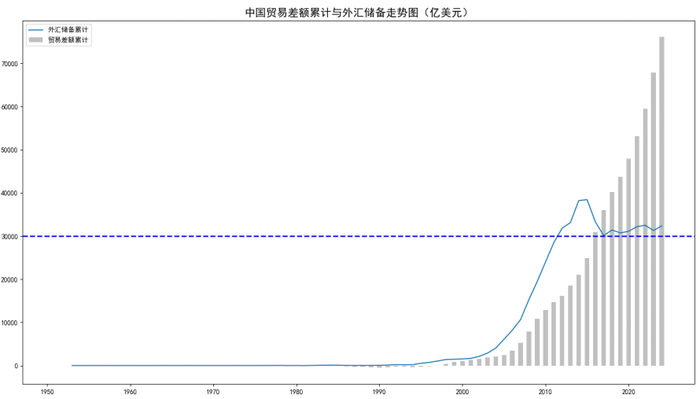 中国自从深度参与全球贸易以来,总共积累了超过7万亿美元的贸易顺差,超过了美国累计对外释放的贸易逆差16.2万亿美元的40%。