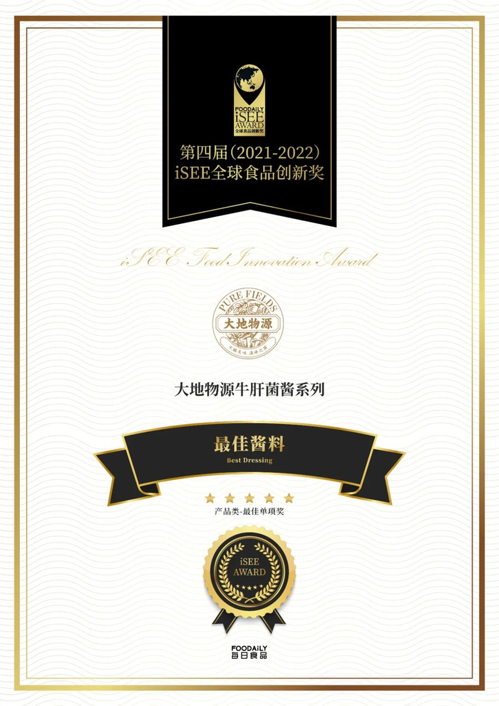“大地物源”牛肝菌酱系列,还获得了第四届iSee全球食品创新奖。