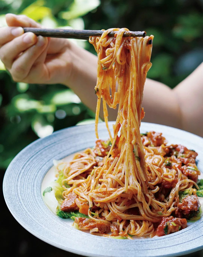 菌酱作为浇头,吃的时候不要只顾着夹菌子,舀点菌油到面里,挑起来一拌,面条裹满菌香,不要太好吃!