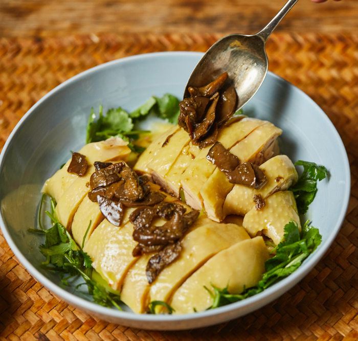 也可以用来做个简易版的椒麻鸡,鸡腿浸润了椒麻牛肝菌菌油,还能吃到大片牛肝菌,只闻味道就忍不住流口水。