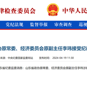 近日,据中纪委网站消息,山东省政协原常委、经济委员会原副主任李玮涉嫌严重违纪违法,目前正接受山东省纪委监委纪律审查和监察调查。