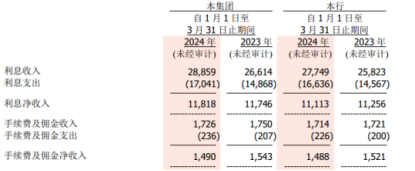 浙商银行年报显示,2023年该行手续费及佣金净收入50.40亿元,较上年增加2.49亿元,增长5.20%。相比之下,2024年一季报显示,该行手续费及佣金净收入14.90亿元,相比2023年一季度15.43亿元减少了0.53亿元。