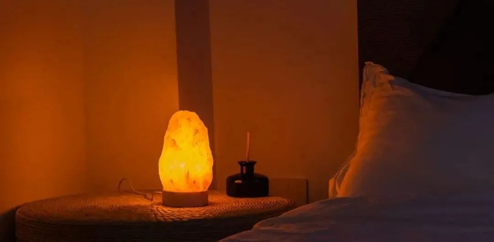 早些年五星级酒店还流行“喜马拉雅盐灯”,比如素凯泰和阿纳迪两家奢华酒店,这种灯在粉色的盐晶中间或者底部埋钨丝,通上电,光就通过层层盐晶的折射出来,嘎嘎有情调。