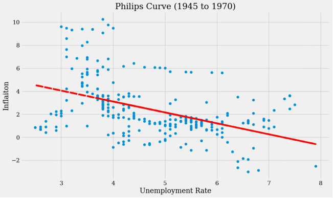 从1945年到1970年,菲利普斯曲线的表现是正常的,政府政策在当时以通胀的上升实现了失业率下降的目标。