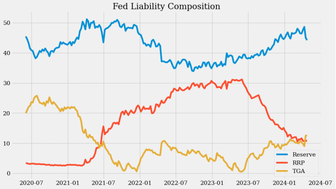 以RRP为代表的影子银行也在收缩流动性。