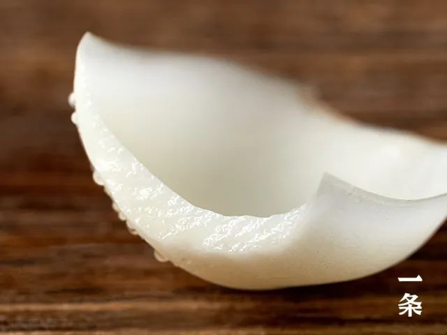 饱满的肉质,色泽洁白如玉,肥厚多汁且细腻,没有粗纤维,入口嚼食后,几乎没有渣。
