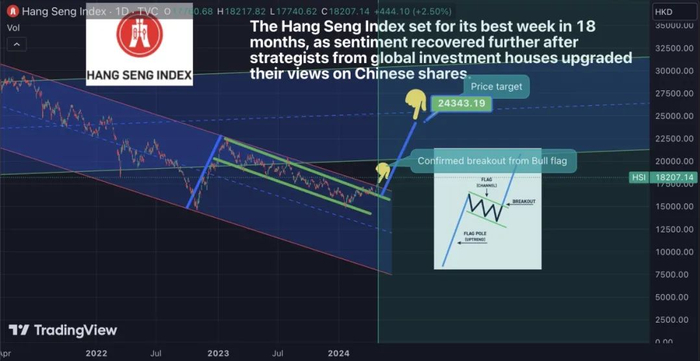 尽管如此,甚至有看好港股的海外网友画出了“看涨旗形”,至于港股是否能再涨出一个对称旗杆的高度,以及你应该如何利用这波“价值投机”,仍取决于很多因素。不过从更长的周期来看,当前港股毫无疑问是全球的估值洼地,若宏观面(经济数据)和微观面(财报)能持续改善,港股将具备配置价值和上行空间。