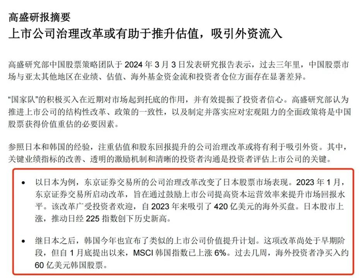 资本市场治理改革尤其引发外资的关注,因为他们从日本和韩国市场已经尝到了甜头。4月12日,新“国九条”是继2004年、2014年两个“国九条”之后,国务院再次出台的资本市场指导性文件,强调加强上市公司现金分红监管、提高股息率,以提升股东回报稳定性和可预期性;