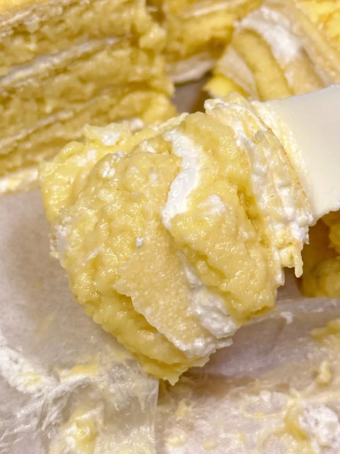 千层、奶油、榴莲,三者巧妙融合,恰到好处。