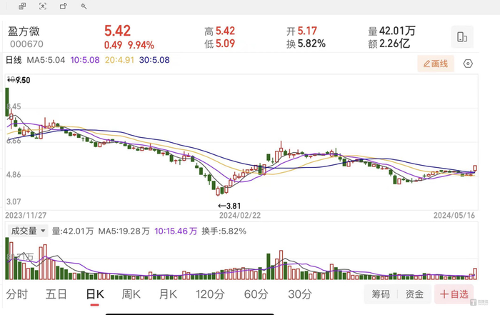 二级市场方面,5月16日,公司股价高开高走,触及涨停。截至收盘,公司股价报收5.42元,涨幅9.94%,当前总市值为46.03亿元。