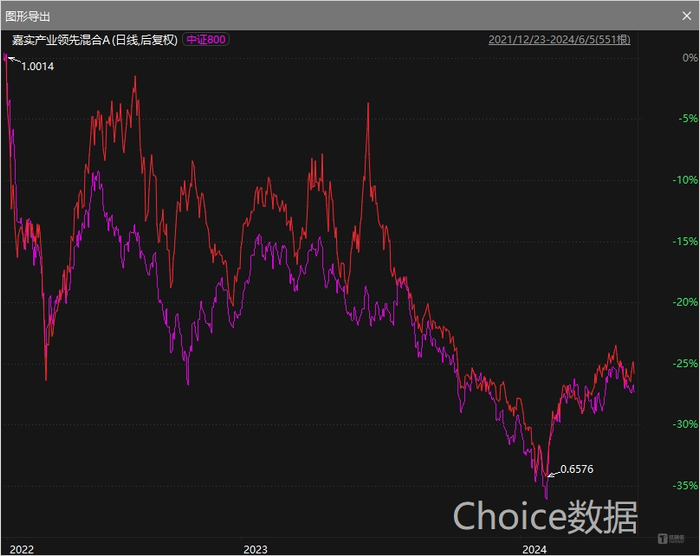 (自基金成立以来,在大部分时间里,嘉实产业领先混合的净值走势与中证800指数非常相似,且近期有加强的趋势;数据来源:Choice终端)