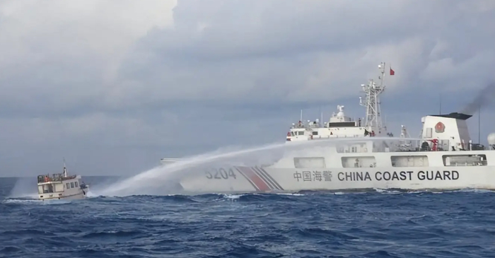 6月17日,菲律宾一艘运补船非法闯入了仁爱礁邻近海域,中国海警对其依法采取了管制措施。