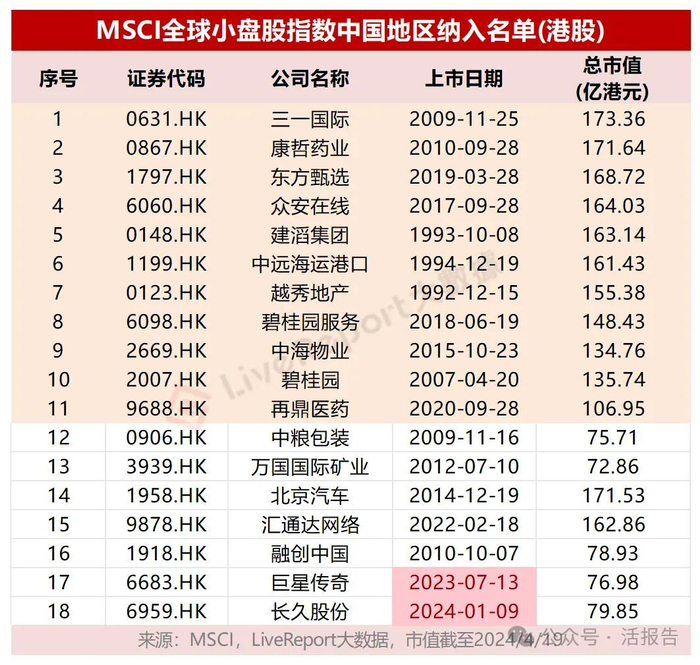 值得一提的是,2024年5月31日,2024年上市的新股长久股份已经被纳入了MSCI全球小型股指数。