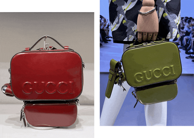 这款品牌logo醒目的手提包,借鉴了Gucci典藏旅行箱Valigeria的经典设计,搭配上底部可拆卸的小包。