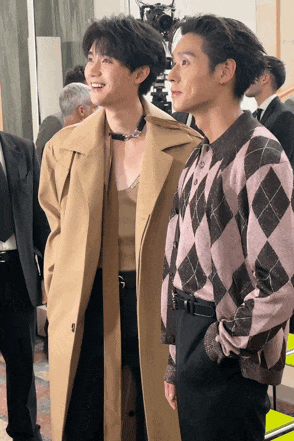 秀场不远处,我又看到两位帅哥似乎在合影,凑近一看,这不是内娱小生周翊然和泰剧男主Billkin吗?