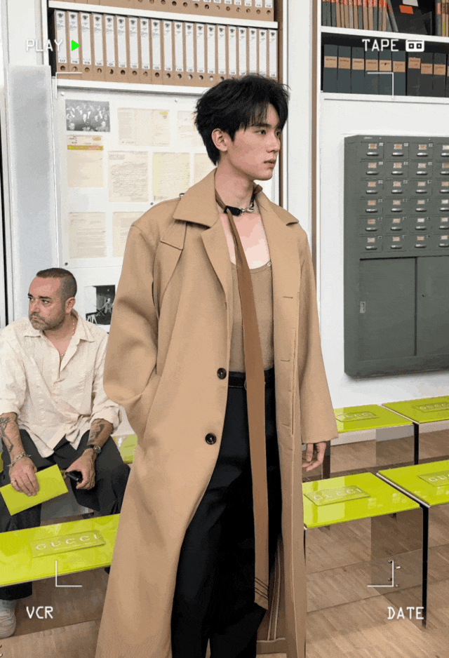 别看这是他第一次参加Gucci这种海外大秀,但表现特别松弛,也很懂和镜头互动。