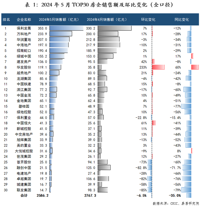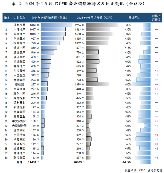 物业+报告|中国房企TOP30月报(2024年5月)