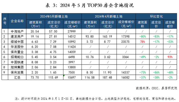 5月TOP30房企拿地节奏大幅放缓,国央企是绝对主力