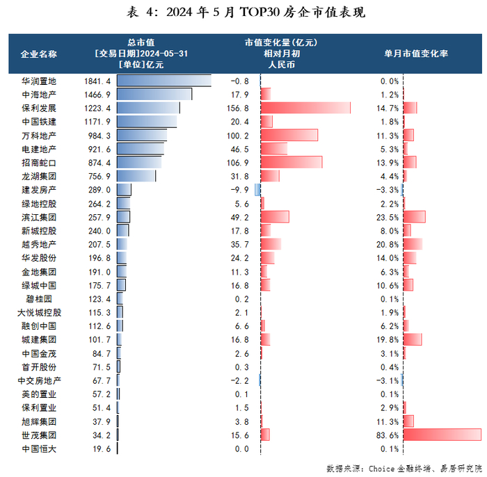 5月TOP30房企市值普涨,上月下跌房企得到显著修复