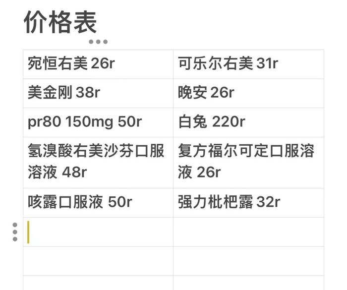 YOUNG财经选择其中一位卖家进行私聊,询问其右美沙芬的价格。在加上对方微信之后,卖家发送了一张价格表。