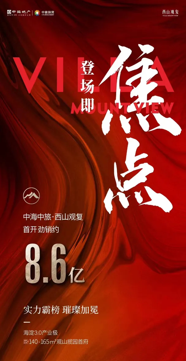 6月30日,中海中旅西山观复正式开盘,销售额达8.6亿。项目位于海淀区,五、六环之间,距离地铁16号线稻香湖路站、屯佃站约2公里,出行快捷便利。