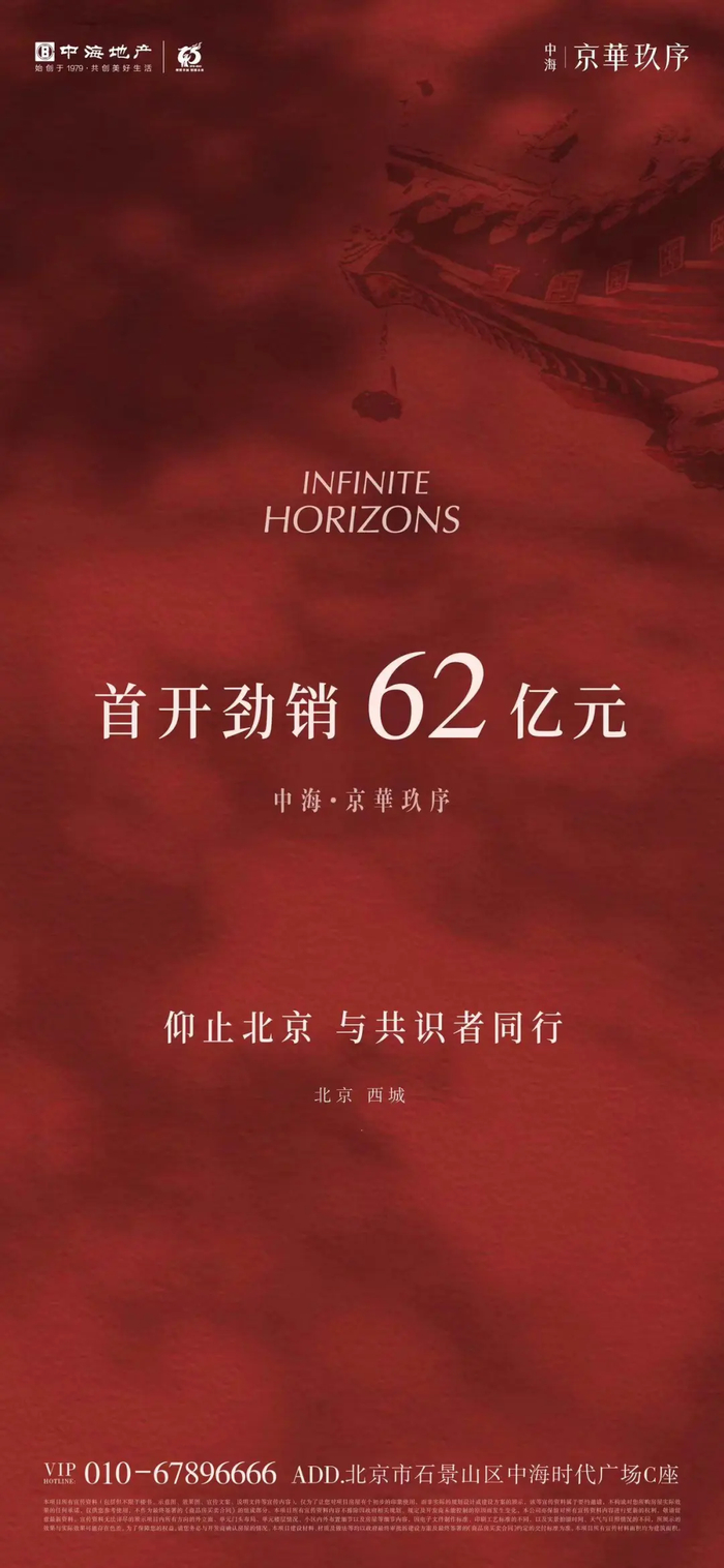 6月29日,中信城五期-中海·京华玖序如期开盘,销售额达62亿元。据悉,该项目户型面积为78-288㎡,首批推9栋楼,共计325套房源,开盘价格17.8万元/㎡左右,总价1500万起。