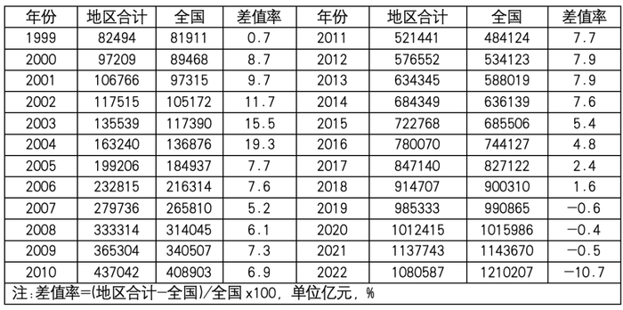 也就是说,从“各算各账”变为“共同算账”了。国家队亲自下场,形势开始发生了逆转。从2019年开始,地方GDP总和竟然低于全国。2022年,差值率甚至下降至-10.7%。