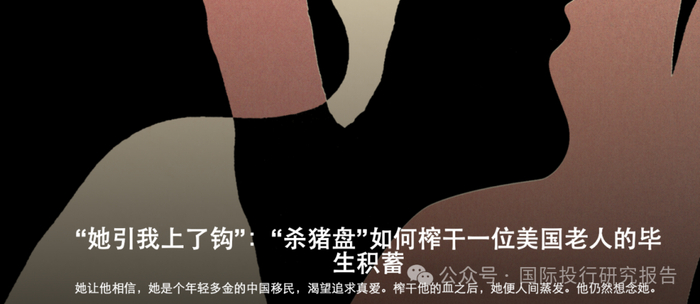 长达数月的噩梦就此开始,他的退休储蓄被掏空,一度徘徊在自杀边缘。他是全球数百万“杀猪盘”受害者中的一员。所谓“杀猪盘”,是一种诈骗方式,诈骗者在网上勾引陌生人,博取他们的信任,并劝诱他们把钱投入虚假的投资项目。