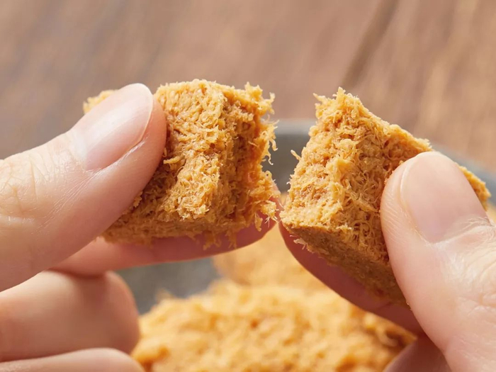 这样做出来的蛋酥,鸡蛋含量达到了70%。蛋绒丝丝分明,口感香脆。