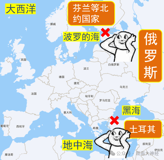 欧洲方向的出口都被北约拿捏死了(波罗的海和黑海)。