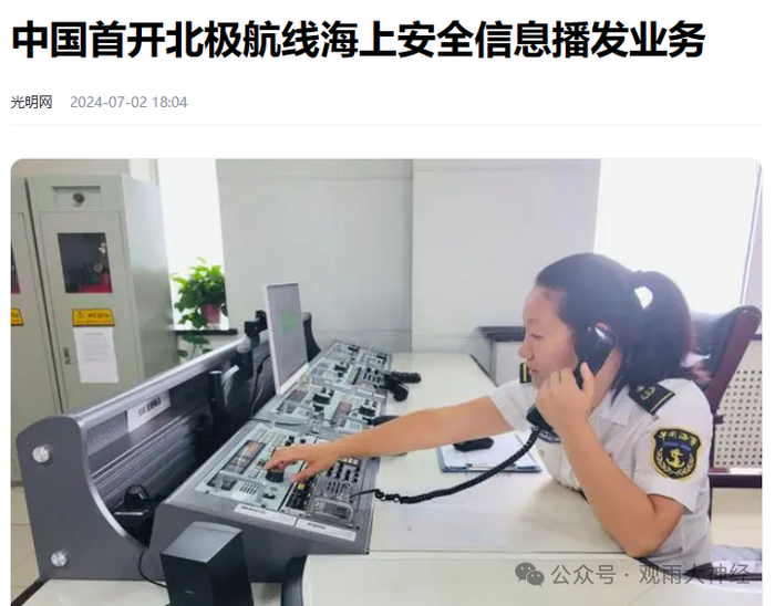 然后在7月1日,天津海岸电台就首次开启了北极航线的海上安全信息播发业务。