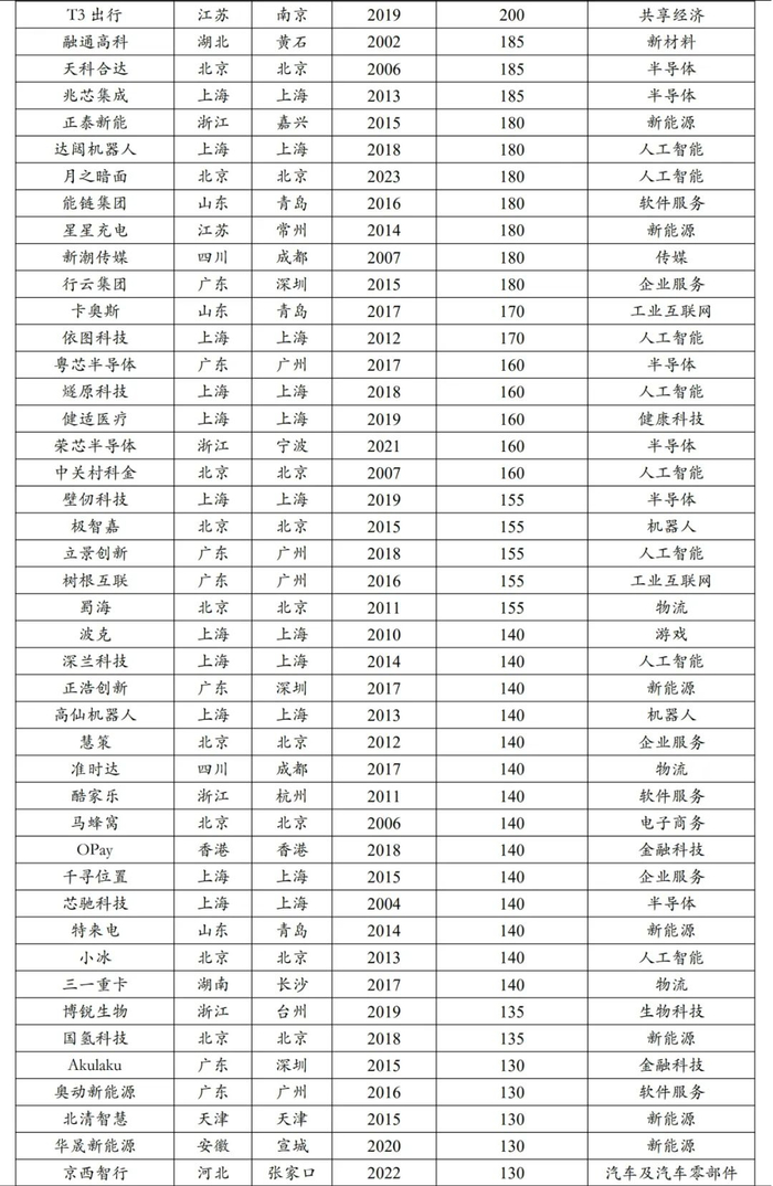 新能源、人工智能、半导体行业涌现的独角兽数量最多。新能源独角兽受益于产业的快速发展,pre-IPO和IPO推进中的独角兽数量多、规模大、质量高。人工智能在2023年爆发,无人驾驶领域聚焦大量优质独角兽,AIGC领域独角兽的数量上迎来快速增长。半导体行业也迎来市场和需求的双重催化,自主化取得进展,下游AI和智能驾驶带动增长,独角兽数量激增。