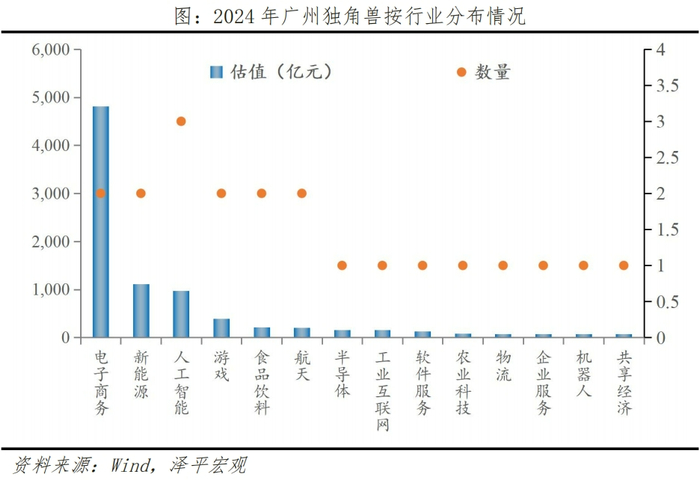广州独角兽共21家,数量占比7.3%,总估值8526亿元,占比10.1%。数量上,人工智能、电子商务、航天行业分别占14.2%、9.5%、9.5%,广州的优势在先进制造、新能源和电商、物流领域。跨境电商巨头Shein起家于广州,通过商业模式创新和数字化升级将业务拓向全球。新能源领域广汽埃安估值千亿,在2023年实现了48万辆销量,同比增长77%。
