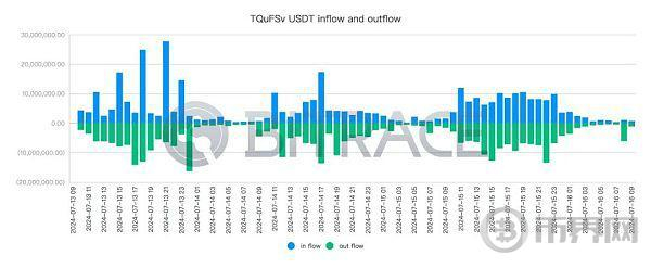 以小时为时间单位对 TQuFSv 的收入、支出情况进行统计,并未发现明显的资金异常现象,且该地址当前仍存有 1288 万 USDT 余额。