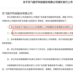 公司拟发行不超过23,103,350股境外上市普通股并在香港联合交易所上市,且公司14名股东拟将所持合计70,261,562股境内未上市股份转为境外上市股份,并在香港联合交易所上市流通,其中包含母公司科大讯飞、科大讯飞副总裁胡国平、招商局基金(0133.HK)旗下的天正投资等。