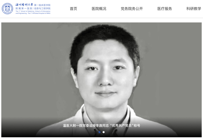 据温州医科大学附属第一医院官网消息,7月21日,中共温州医科大学第一临床医学院(信息与工程学院)、附属第一医院党委决定,追授李晟同志“优秀共产党员”称号。