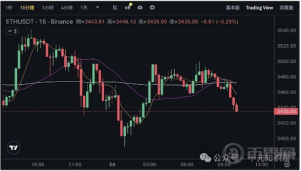 以太坊的价格走势上,也没有庆祝行情。美股开盘后短时升高近3,500 美元,随后便持续下挫,接近一点左右更跌破3,400 关卡,最低报3,389 美元。截稿前有所回弹,但幅度不算大,现报3,435 美元,近24 小时下跌1.39%。