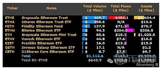 需要注意的是Grayscale 的ETHE,因为获利了结或转换低手续费,净流出总额高达4.84 亿美元,接近其AUM 的5%,Eric Balchunas 对此发文表示:
