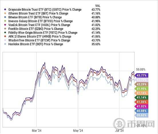 如果我们看回报率,通常表现非常接近,GBTC 表现更好,但费用也更高。我不会得出更高费用导致更好回报的结论。GBTC ETF 是从信托转换而来的,所以它的发行动态不同于其他 ETF。总的来说,我认为较低的费用会带来更好的表现。
